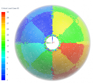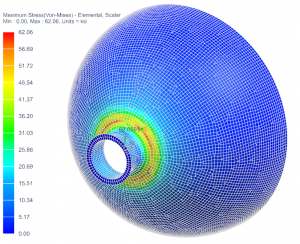 The enveloped Von-Mises stresses and associated critical load case ID by element are shown below. The peak stresses are concentrated in the transition region between the flange and the tank dome, as expected. The peak stress across all load cases is 62ksi. The tank and flange materials are assumed to be made from an Aluminum-Lithium alloy with a yield strength of 59ksi. The current design will thus yield under the limit loading conditions. So what now? We will still have to iterate through the design-analyze cycle, but thanks to the automated post-processing procedure, more time can be spent exploring alternative design choices with less time spent executing the analysis steps. Furthermore, the automated tool developed using NXOpen + Python can even be leveraged by optimization frameworks, such as Simcenter HEEDS, for performing automated design exploration that is tied to the geometry model. Alas, we will leave that topic for another time.