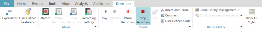 - Each interaction with the GUI will then be recorded until the Stop Recording button in the Developer tab is selected