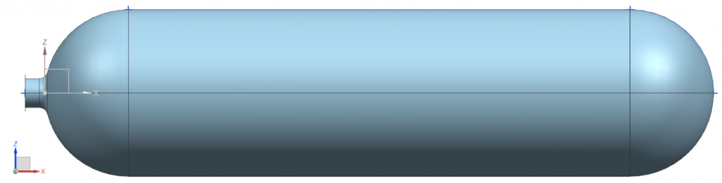 To further explore the use of NXOpen, imagine a cylindrical pressure vessel with a flange extending outward from the dome center on one end, as shown below.